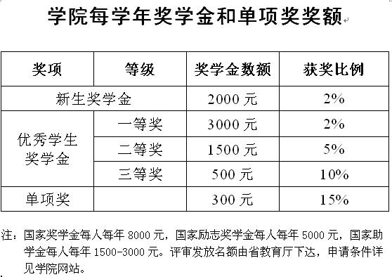 学院每学年奖学金和单项奖奖额