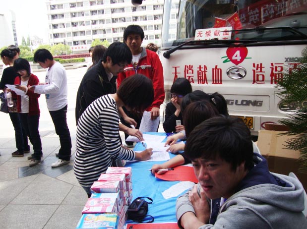 2010年4月29日,在院医保中心、团委的组织下,携手省血液中心开展了一次无偿献血活动。全院师生踊跃参加,分院同学积极向应,献血人数达到94人,献血量和献血人数全院第一,他们是分院的自豪。作为民航分院的献血志愿者,我们为自己的表现感到骄傲。