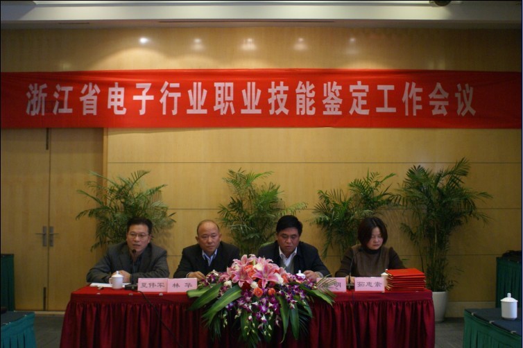 2010年11月17日,浙江省电子行业职业技能鉴定工作会议在杭州大厦会议中心召开,出席会议的领导为工信部电子行业职业技能鉴定指导中心主任周明,省经信委副巡视员林华,浙江省第五职业技能鉴定站站长茹惠素女士,各下属23所兄弟院校及10余家企事业单位的职业技能鉴定所(点)的主要负责人员出席会议,会议有省经信委人事处副处长、机关党委专副职书记夏伟军主持。