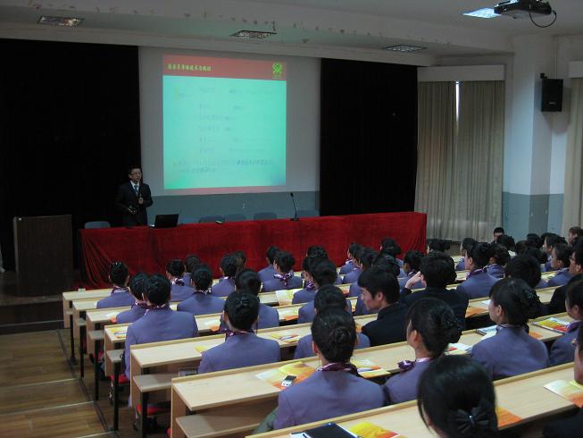 12月7日,海南航空公司人力资源部招聘经理穆光远专程来我分院举办招聘宣讲讲座。我分院空乘专业09级全体学生以及部分08级、10级同学一起听取了讲座。穆经理为同学们介绍了海南航空的基本情况及未来发展以及成为一名合格的空中乘务员应该具备的相应素质,最后穆经理详解介绍了海航即将在杭州举行的乘务员招聘的时间、地点和流程,欢迎同学们参加海航的乘务员招聘。讲座结束后,同学们报名踊跃,报名人数超过了120人,本次讲座收到了很好的效果。