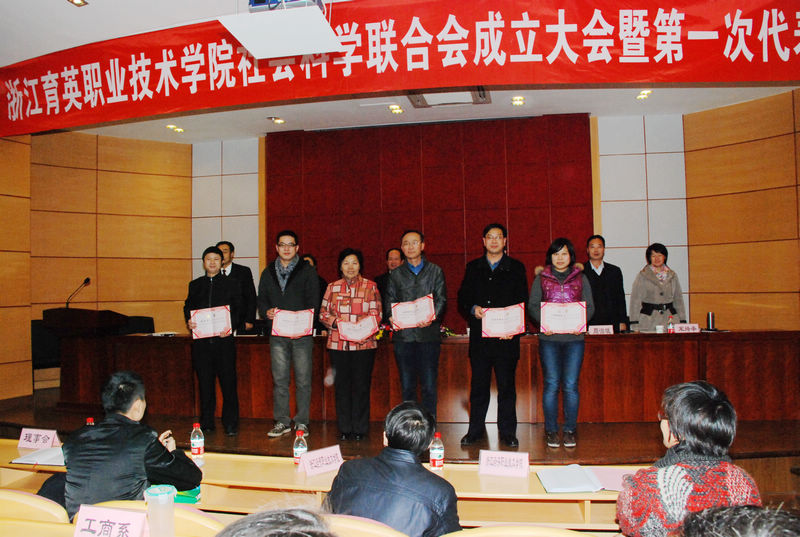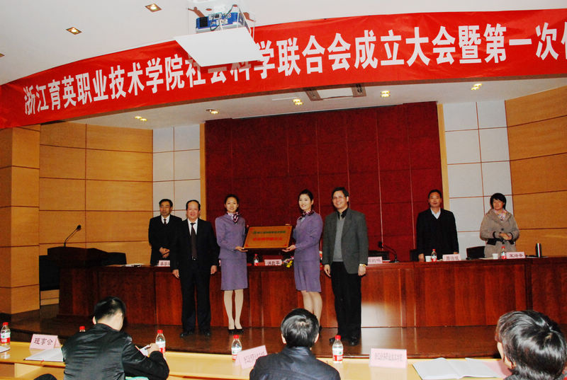 学院社科联第一届理事会主席洪致平在讲话中简要介绍了学院的科研队伍和科研成就,他指出,近几年我院在省、市、学院的课题立项有300多项,主要是人文社科类的课题,课题数量逐年在增加,科研能力逐步增强。他说,今天是育英学院值得记载的一天,学院社科联的成立,是校园文化生活的喜事,是学院发展历程中的一个大事件,使我院哲学社会科学工作者有了一个“家”,为开展社科活动增添了新的依托和平台,是学院发展的机遇。他希望我院社科联全体成员不负省社科联的期望,不断推出高水平的研究成果,进一步促进学院教学质量和科研水平的提高,为学院科学发展服务,为繁荣浙江省哲学社会科学研究、为浙江经济和社会发展作出贡献。