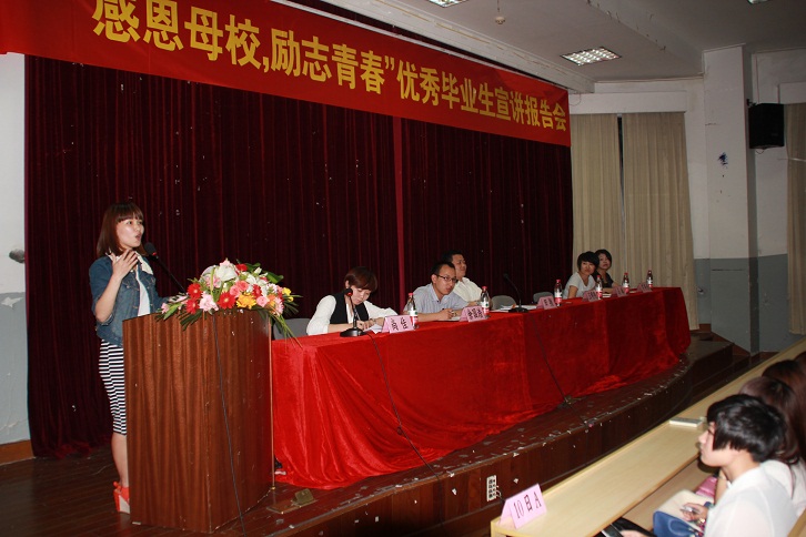 2012年5月27日晚上6点40分,经济贸易系在一号报告厅开展了“感恩母校,励志青春”优秀毕业生宣讲报告会。系党总支书记田翔老师、团总支书记余国浩老师、10级全体同学和班主任老师参加了报告会,09日语B班王明明、09英语D班马琳、09国贸D班罗燕佳作为优秀毕业生从自身的学习工作进行了宣讲,本次报告会由德育教研室尚佳老师主持。 在尚佳老师生动的开讲词后,宣讲会正式开始。在东忠实习的王明明率先做报告,她从大一军训、学校学习、东忠培训及现在的工作,以幽默和煽情的方式向同学们传递了“人想要平淡的过下去也不是容易的,当情绪烦躁时不要轻易做决定,在大学要充分的学会珍惜时间”等信息;在外贸公司上班的马琳从自身什么都不懂进入公司实习开始,真真切切实实在在的谈了自己的体会,全英文的交流,全英文的制单拟合同等等工作告诉同学们在校期间一定要充分利用时间学习语言,学习知识,特别是学习语言时一定要多说多听多与他人交流等;罗燕佳告诉同学,作为系第八届团总支副书记,优越的成绩和较强的组织能力让她感觉自己拥有很多的砝码,但到了公司以后才发现曾经的优越只是“Big fat zero”。一切都得从零开始,从细节开始,不断的坚持,现在已经是集团公司的行政储备干部。她告诉同学们去面试时应该准备什么,应该如何选择,简历该怎么制作等经验。 最后,田书记作了总结。作为大学生的我们,要提高自己的学习能力,除了学习专业知识以外,也要将专业以外知识以及素质全方面的提升。即将面临工作岗位的我们,应该正确审视自己,真正扬帆起航。 相信这次活动会为同学们以后成功进入工作岗位奠定良好的基础。预祝同学们有个美好的未来!                                           经 济 贸 易 系                                            2012年5月28日