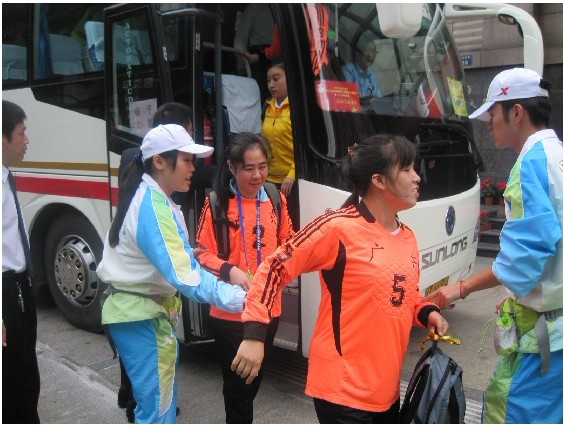 我们志愿小分队所负责的内容是盲人门球的运动员及教练员的宾馆接待工作。接待工作平淡中透着快乐。