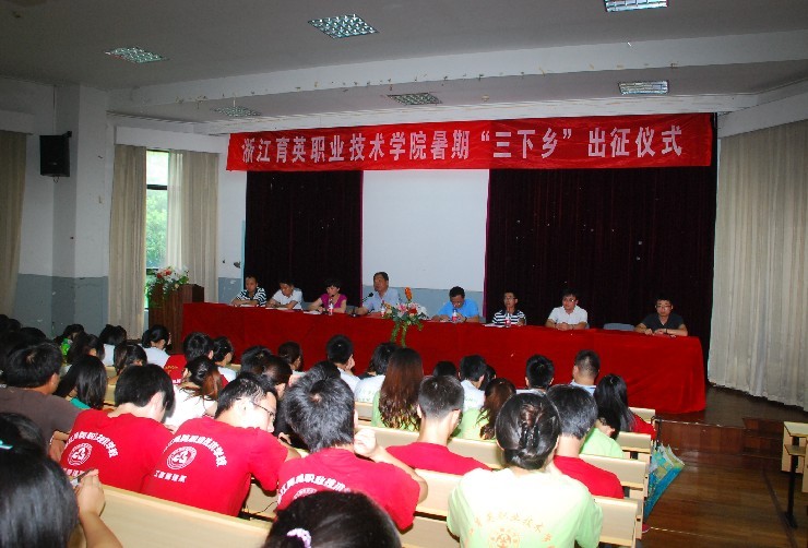 6月27日下午15:40,学院2012年暑期三下乡出征仪式在综合楼一楼报告厅隆重举行。学院副院长陈六明、学生处处长王敏、团委书记邬佳、团委副书记赵林以及各分院系团总支书记、小分队带队教师和各“三下乡”代表队成员参加了本次仪式。会议由团委书记邬佳主持。