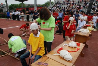 6月6日下午,学院卫生健康知识与救护技能总决赛在操场隆重举行。院红十字会领导及相关处室领导,各分院、系党总支副书记出席,部分教师和11级学生参加。活动由副院长、院红十字会副会长陈六明主持。