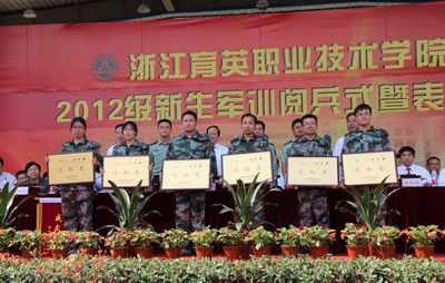 9月29日上午,经过12天严格的军训,我院2600余名2012级学生顺利完成了军训和入学教育,军训阅兵式暨表彰大会在田径场隆重举行。73021部队直工科科长房凯,部队干事张海滨,军训团团长骆灿勇,学院党委书记、院长洪致平,党委副书记、副院长、军训团政委周治斌,副院长、军训团副团长陈六明、黄爱平、秦学礼,院长助理王锡耀以及学院各系部和有关处室领导等在主席台就座。2012级新生班主任以及全体新生参加大会。