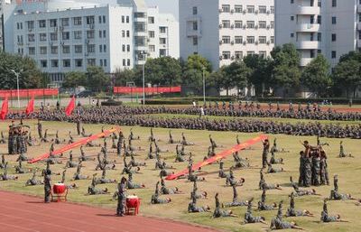 9月29日上午,在迎军训团团旗后,洪致平院长在军训团团长骆灿勇的陪同下检阅了军训团,随后标兵就位、分列式开始。从一营开始,各个方阵喊着嘹亮的口号逐一通过主席台,接受检阅。150人军体拳方阵表演气势如虹、刚劲有力,将整场大会推向高潮。全场掌声雷动,学员们英姿飒爽,步履坚定,整齐有力,充分展示了本次军训所铸就的新一代大学生的钢铁意志和严明纪律。