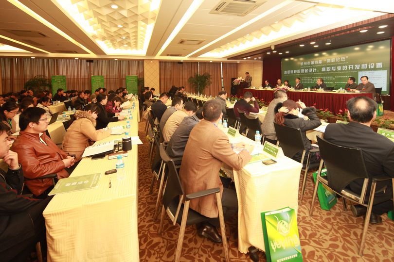 11月23日,杭州市第四届“高职论坛”在下沙城建文化馆举行,会议旨在通过政府相关部门信息传递、专家报告和校际交流,加快推进杭州四所市属高职院高等职业教育的特色优势专业建设,提高高职教育人才质量。这次的主题是“高职院校的顶层设计:高职专业的开发和设置”。