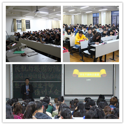 民航与旅游分院学生干部讲师团在团总支的牵头下于3月底成立。在2013年4月7日晚7点30分,民航与旅游分院学生干部培训开班典礼暨第一培训在1316教室顺利召开,本次培训主题为“学生干部正能量”,由分院党总支书记王贤军主讲。参加本次大会的有分院第九届团学全体成员以及分院11、12级各班主要学生干部。