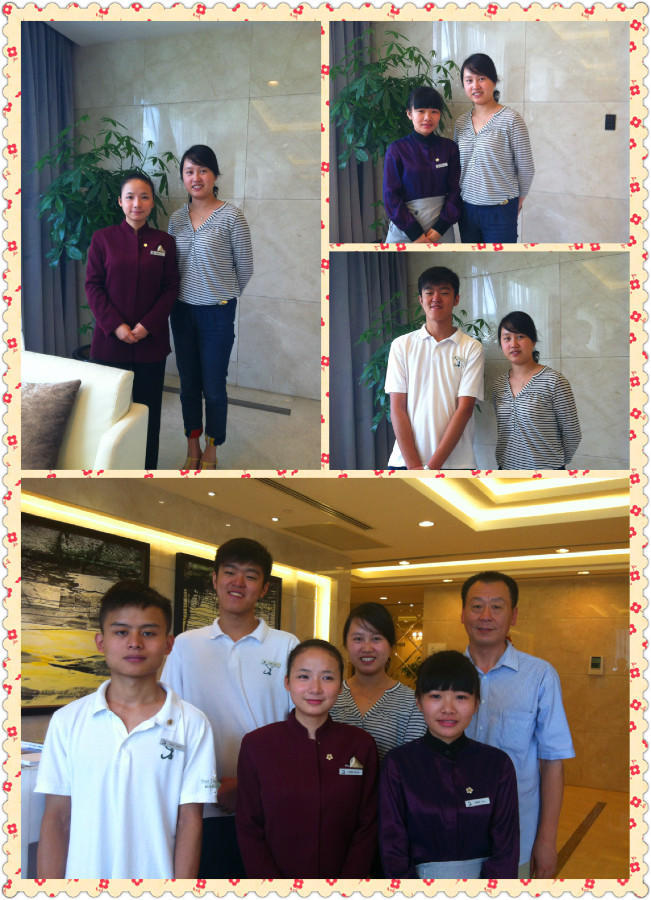 2013年9月18日,借着马上过中秋的节日气氛,民航与旅游分院实践教研室的朱尧老师、严雅萍老师、曹晓青老师走访了杭州黄龙饭店,看望了在那里实习的6名学生,给他们送去了家人般的温暖,填补了他们节日对家人的思念之情。
