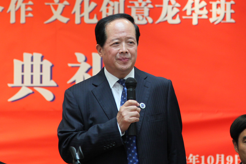葛自祥致辞。他表达了对首届文化创意龙华班学生的期望,希望同学们要随时随地观察思考并记录自己的创意想法;要善用电脑媒体工具;要具有国际观,随时吸收最新的文化创意资讯;要有内涵,任何设计都要基于人性;要有自信心。希望同学们在经过两岸教师精心策划的课程中好好学习,成为一名出色的文化创意产业人才。