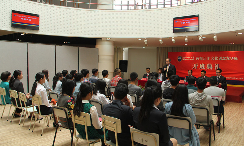 洪致平对前来参加开班典礼的葛自祥校长和龙华科技大学对育英学院的办学支持表示衷心感谢。他表达了对文化创意龙华班成立的祝贺。他说,杭州市要成为全国文化创意产业中心,将需要大量的文化创意人才。作为一所学校,最根本的就是培养社会需要的人才。文化创意龙华班是一种新的人才培养模式。相信经过三年的学习,龙华班的学生在汲取了龙华科技大学老师的创意创新思维以及育英学院老师精心设计的课程后,将会成为一批具有较强的创意精神、艺术素养和创造力的文化创意产业高素质应用型人才。希望同学们和两校共同努力,实现这一目标。