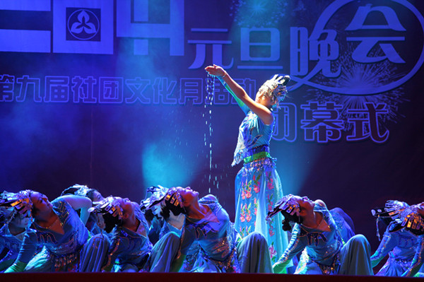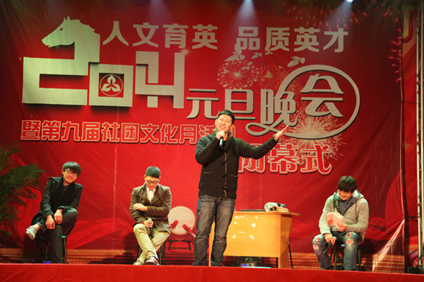 由继续教育分院带来的歌伴舞《落花情》,拉开了晚会序幕。学院党委副书记、副院长周治斌致辞,他总结了我院在2013年所取得的成绩和各项重大荣誉,并向全院师生送上了真挚的新年祝福。