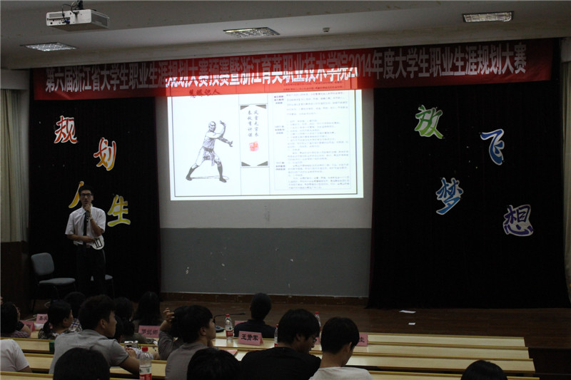 副院长陈六明、学生处处长王敏、招生与就业指导办公室主任方明,各分院、系党总支书记,就业创业指导教研室全体教师,大一、大二班主任和学生代表350余人观摩了大赛。