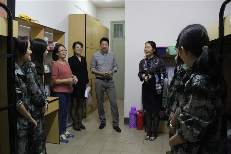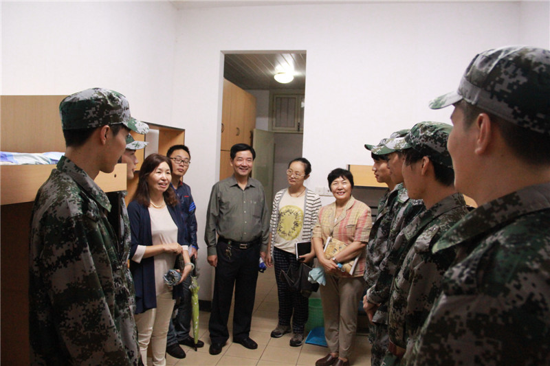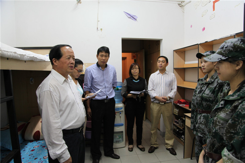 洪院长等领导细致地询问了学生所学专业、籍贯,希望寝室长做好带头作用,关注大家的饮食起居,并亲切地询问他们这几天的军训及生活情况,生活上有什么困难等。嘱咐他们要常常与家人联系,也要好好学习专业知识,尽快适应新环境,尽快完成从中学生到大学生身份的转变,早日成为合格的职业人,同时勉励同学们互相帮助、团结向上。