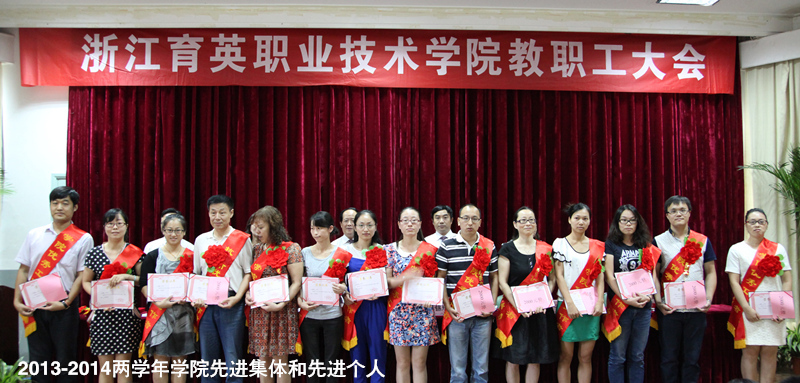 王锡耀宣读表彰优秀教师和先进集体文件。崔海辉获浙江省高校优秀教师称号;夏天在浙江省高校青年教师教学技能竞赛获一等奖;严志嘉被评为杭州市优秀教师,王锡耀被评为市优秀教育工作者,黄华、夏天、赵瑞晔、陆善兴被评为市教育系统先进教师称号,钱笙、杨振顺、王德芳、王敏被评为市教育系统先进工作者;民航与旅游分院空中乘务教研室等4个单位获学院先进集体称号,吕娜等13人获学院优秀教师称号,张锡良等2人获学院优秀班主任称号,黄华等14人获学院优秀工作者称号;夏天、汪迎春、费亚英等10人被评为学院第三届“我最喜爱的老师”。