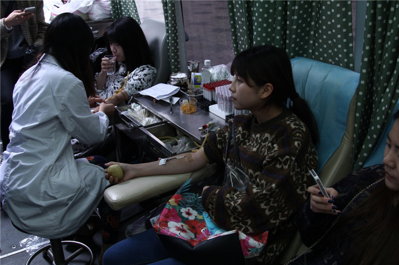 现场也有不少同学因为未满18周岁而不能献血,14空乘A班李倩和14轨道A班戚艳青因此感到遗憾。14轨道A班陈含雪也兴冲冲去排队献血,但是工作人员得知她上大学前参加的无偿献血,间隔不到半年,也没给她这次奉献的机会。她们表示,明年5月一定会加入到同学们当中,奉献自己的爱心。