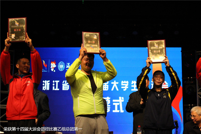 在为期5天的田径比赛中,育英健儿不畏艰难困苦,奋勇拼搏,共斩获11金10银7铜,12人次破7项大运会乙组纪录,1人次平大会纪录,并荣获第十四届大运会田径比赛男团、女团、总团第一名以及田径比赛道德风尚奖。最终夺得浙江省第十四届大学生运动会12个比赛项目的总团体冠军、体育道德风尚奖。
