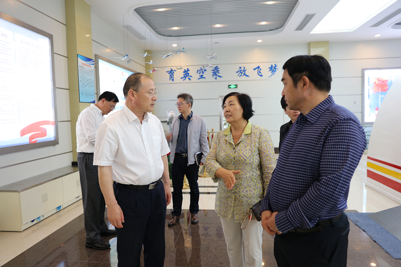 陈松华一行还参观了我院安检实训室、民航空客A330全真模拟客舱服务实训舱、创意设计分院实训基地。