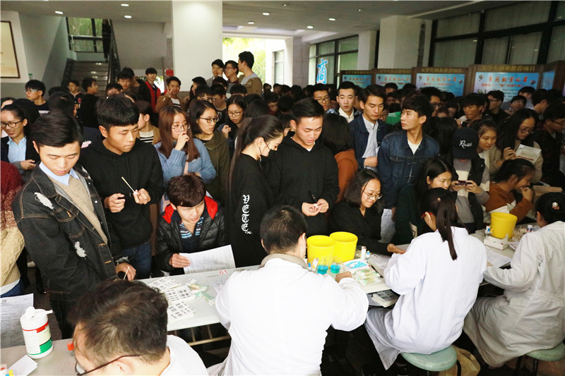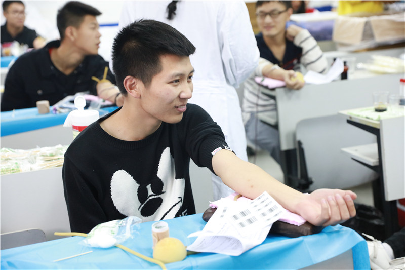 不知大家是否还记得,2015年6月13日《今日早报》题为《热血传递爱心,“绿巨人”温暖你我!》的报道这样描述我院:   “这是一所民办高职院校,却始终把无偿献血作为弘扬人道主义和无私奉献精神的重要育人载体。从2001年起,每年由学院红十字会、团委牵头发起无偿献血活动。每次献血现场,不管刮风还是下雨,学生们都排起长长的队伍,一等就是几个小时,非常令人感动。    在读学生不过几千人的学院,其人口献血率是在杭高校中排名第一,远远超出了一些上万名学子的综合性大学,让学校真正成为一个教书育人的场所。”   要说育英学院小伙伴们奉献爱心的精神在什么时候能集中展现,官微君想,无疑是每年两次的无偿献血活动。11月17日一早,听一位学生无奈地说:“大二的学生这次献不了血,因为间隔上学期献血时间还不到半年。” 那这次献血场面是不是会比较冷清呢?但来到献血大厅,还是被惊到了!除标配的三辆献血车之外,还征用了一间教室采血。   据统计,此次参与献血报名的有1200人左右,最终通过年龄、血液标准筛查共有920人,总计献血量261870ml。比去年同期增加了97位同学及17410毫升的献血量。其中大部分大二学生都因献血未满半年而不能参加此次献血。   工作人员和青年志愿者辛勤付出,活动现场井然有序。志愿者们各司其职,他们有的耐心地为前来献血的同学介绍流程、指引方向;有的随时准备解答同学们在献血过程中遇到的各种问题;各分院工作人员在登记处忙着登记献血名单;礼品处的志愿者也忙着给献血的同学分发纪念品。  链接