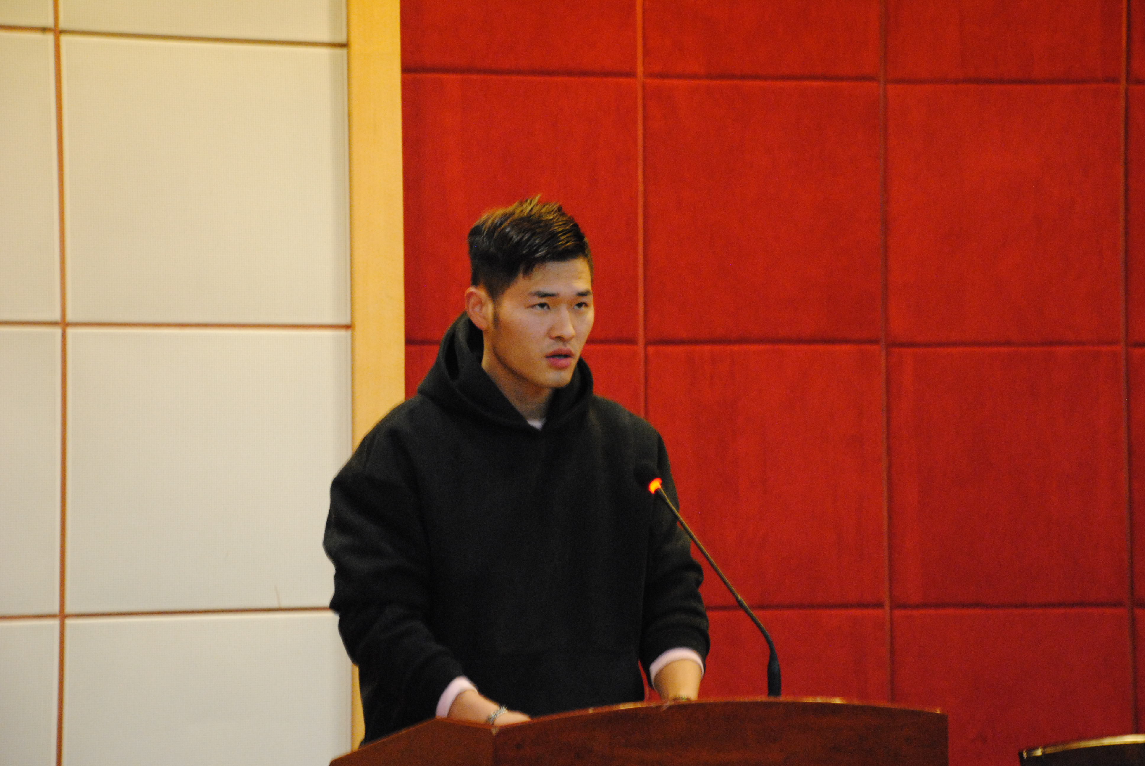 2017年退役士兵代表汪超发言,并代表新同学向学校做出承诺。脱下军装,还是一个兵。虽然离开了部队,来到育英学院这个大集体,会继续发扬军人的优秀品质,顽强拼搏,不届不挠的进取精神,以及不怕苦不怕累的刻苦精神,认真学习专业知识和各项技能。