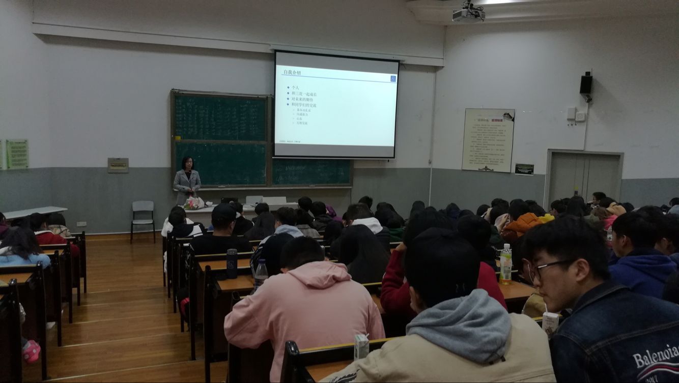 2017年11月22日上午8:30,国际经济与贸易专业邀请浙江三花汽车零部件有限公司国贸部副部长袁亮晶女士给大一学生做行业讲座。