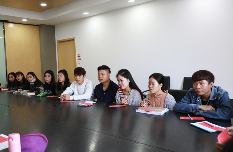 当天正值老挝国国庆节,谢鑫对老挝留学生表示节日祝福,对学院各职能处室、分院领导及老挝班班主任的辛苦付出表示感谢,并向学生一一介绍在座领导。谢鑫希望通过此次交流,了解学生实际情况和需求,争取将这项工作做得更好,通过各部门的共同努力,让留学生在我院学习、生活更加开心。她对留学生承诺,会议上提出的所有问题,都会以书面形式给予反馈。