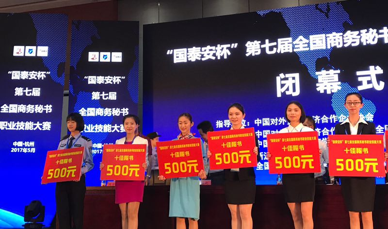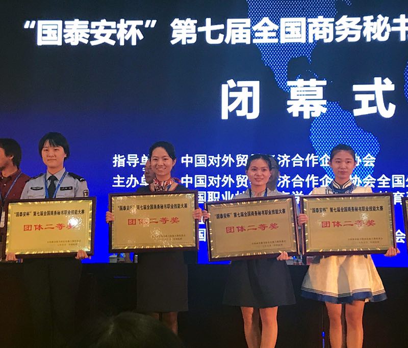 2017年5月27-29日,“国泰安”杯第七届全国商务秘书技能大赛在浙江警官职业学院举行。经过两天紧张角逐,我院文秘专业代表队获1个团体一等奖,1个团体二等奖。个人项目中,1人获一等奖,1人获二等奖,3人获三等奖,王亦飞和胡琼获“优秀指导老师”称号。