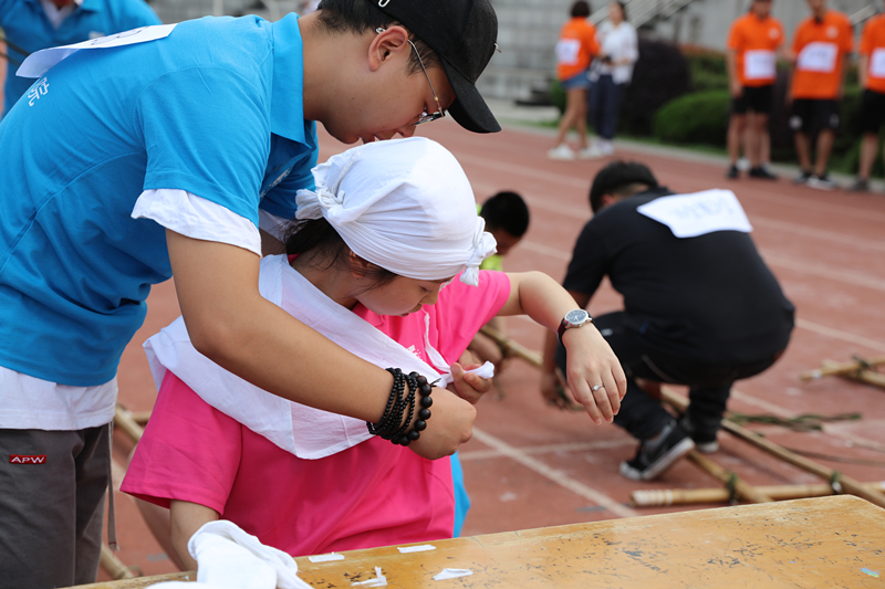 此项比赛已连续举办13届,面向每届新生,全员参与,成为学院特色学生活动项目。除笔试外,技能操作包括:头部外伤包扎、单侧胸部外伤包扎、前臂骨折的固定、担架的制作、搬运伤员50米、心肺复苏术等。此次参赛的336名队员动作娴熟、准确到位、操作快速,一切紧张而有序。