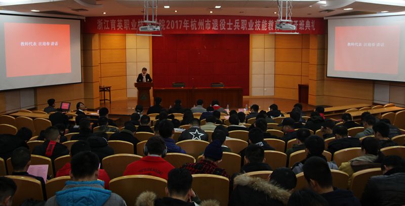 12月23日上午,杭州市2017年退役士兵职业教育和技能培训班开班典礼在我院三号报告厅举行。我院培训中心负责人倪科聊,民航分院安检教研室主任汪迎春,继续教育分院教务主任王卫平,培训班班主任金赛亚和教学助理曹梦婷,及190余名退伍士兵参加典礼。王卫平主持典礼。