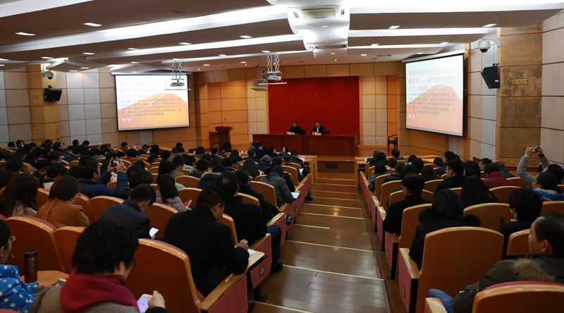 胡坚作了《开创中国特色社会主义新时代---学习领会党的十九大精神》专题报告。他围绕十九大报告,从党的十九大精神八大主要学习要点、全面认识党的十八大以来取得的巨大成就、准确把握我国发展新的历史方位、全面认识新时代中国共产党的历史使命、深刻领会习近平新时代中国特色社会主义思想的丰富内涵等方面作了全面阐述和系统解读。