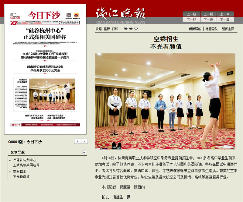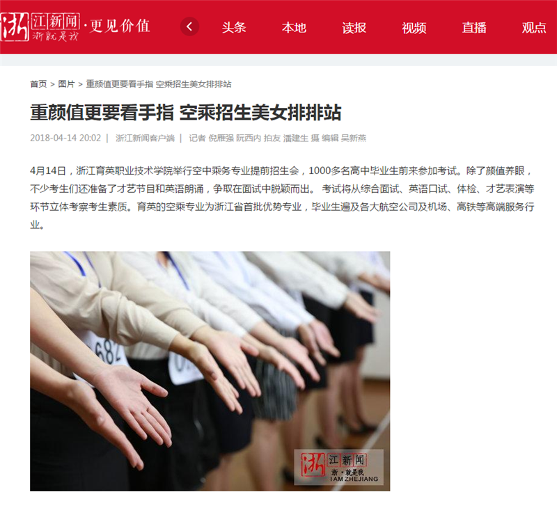 【浙江新闻】重颜值更要看手指 空乘招生美女排排站
