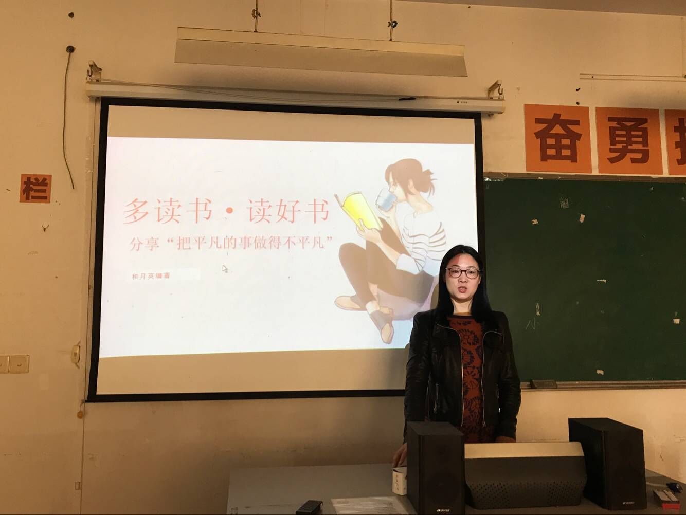 为了进一步推动辅导员队伍建设,提升辅导员职业能力。2018年3月30日上午,商务贸易分院德育教研室在3309教室开展了以“沉浸书香·畅享悦读”为主题的读书分享会。辅导员们把自己读过的一本书结合PPT与大家进行分享,分享中结合日常学生思想政治工作纷纷发表感言,大家收获颇多。