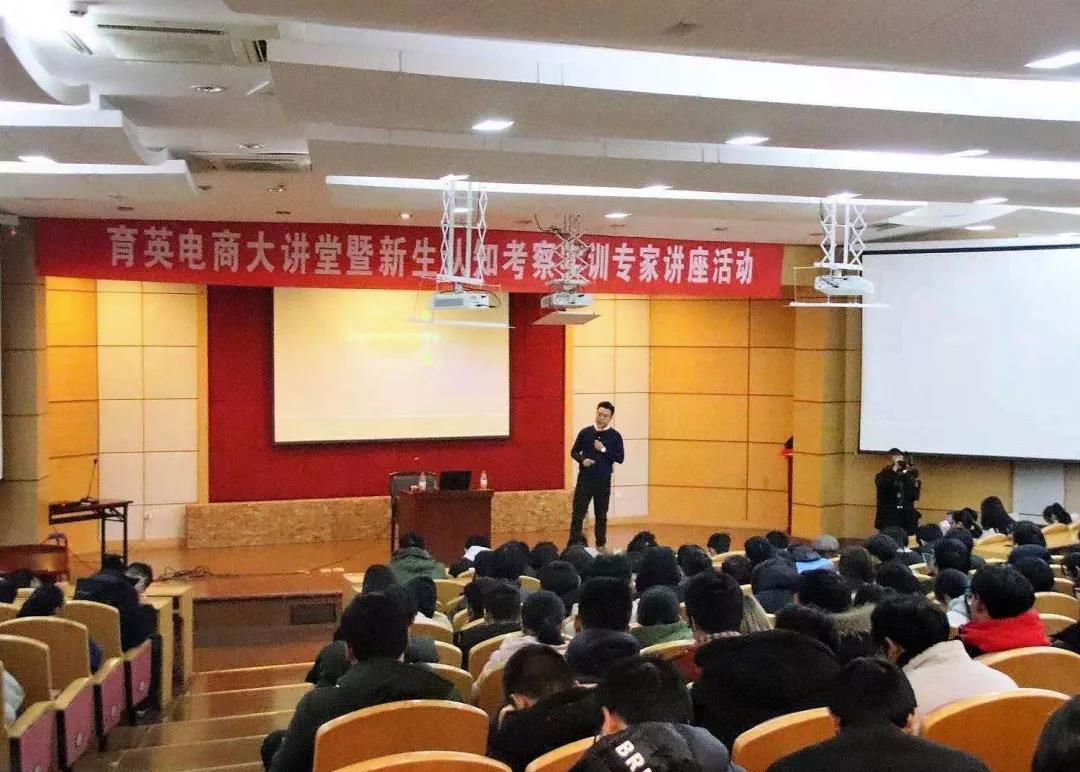 2018年12月13日14:00,电商大讲堂暨新生认知考察实训讲座在三楼学术报告厅隆重举行。本次讲座特邀优秀校友李学凌——杭州首展科技有限公司市场总监(育英学院电子商务专业09届毕业生,曾担任阿里巴巴有限公司温州区域经理)。与会人员有:商贸分院书记王贤军老师、电商教研室全体教师,18电商专业300多名学生。