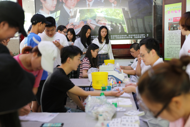浙江省血液中心纪委书记陈江天,学院院长盛健,党委书记、常务副院长王锡耀,副院长黄爱平,党委副书记、副院长谢鑫,副院长王敏,学院红十字会相关领导也来现场,慰问参与无偿献血的师生,为育英师生的大爱精神点赞。