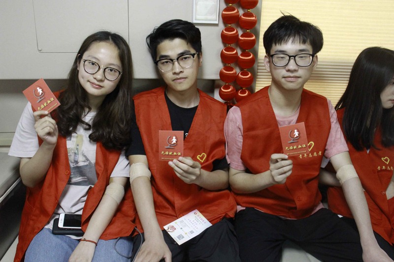 “赠人玫瑰,手留余香”。当有幸成为光荣的献血者,手拿红色的献血证时,同学们的脸上都露出了自豪的笑容。无偿献血,让人深切感受到生命的力量。顾青、娄雨冰等教师也加入献血行列。