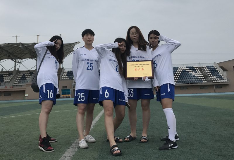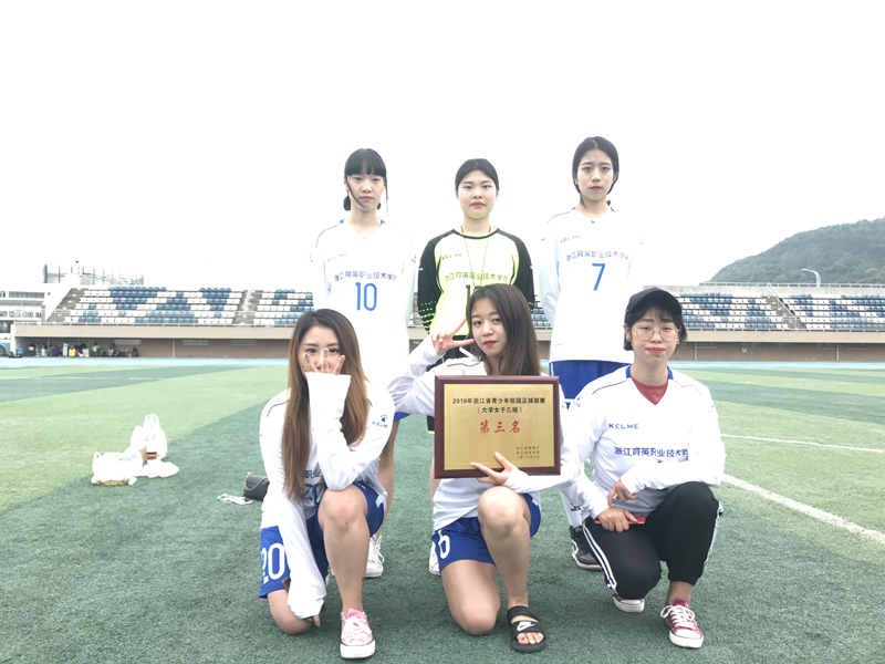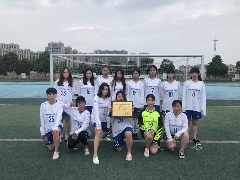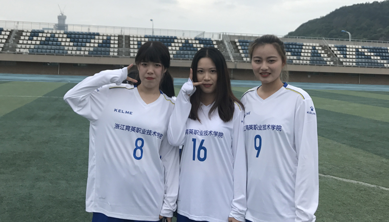 女足队员为:16国贸C班黄荧荧,16国贸C班吴盈莹,16跨境电商班周佳洁、严芳英,17国贸C班余倩茹,17国贸五年一贯A班周莹芝、孙金萍、贺璐璐,16应用日语汤嘉妮,17空乘B班陆灵飞,17空乘I班赵佩玲、廖小涵,17空乘H班骆冰,17计应D班周佳丽。