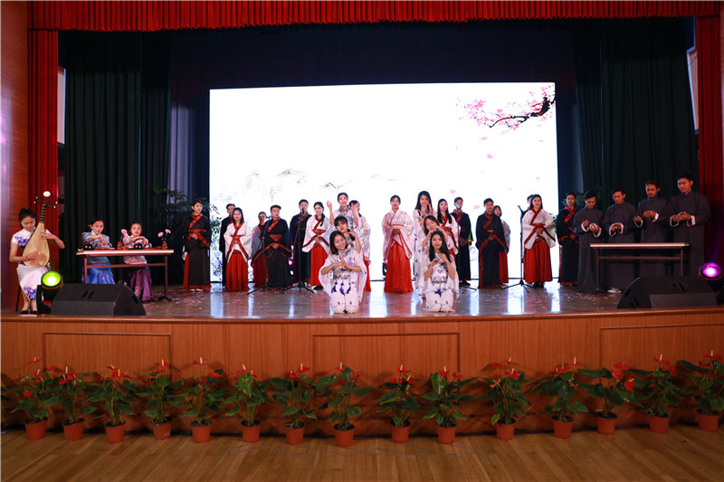 演出结束,16级留学生开心的说:“终于在快要毕业的时候,有机会穿上汉服,并且向全校的老师和同学们展示我们所学的中华文化。汉服真的好漂亮,中国诗歌真的很好听,我们都很喜欢。”