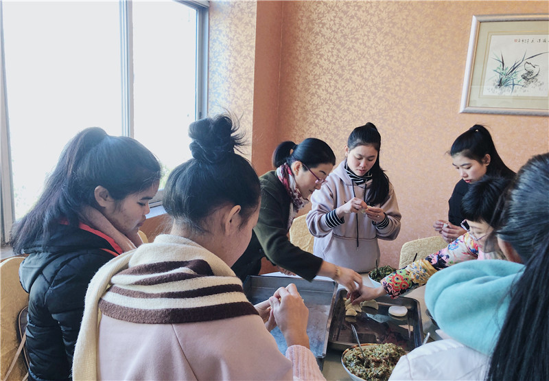 29日中午,学院院长盛健、副院长谢鑫、经管分院、外事办相关领导以及留学生班任课教师在贤园餐厅和45位留学生一起包饺子、吃饺子、共唱新年歌。谢鑫副院长向留学生讲解饺子馅和饺子皮的制作方法并教孩子们如何包饺子。汉语老师王彤介绍了饺子的历史起源和民俗传统,老师们和同学们共唱中文歌。