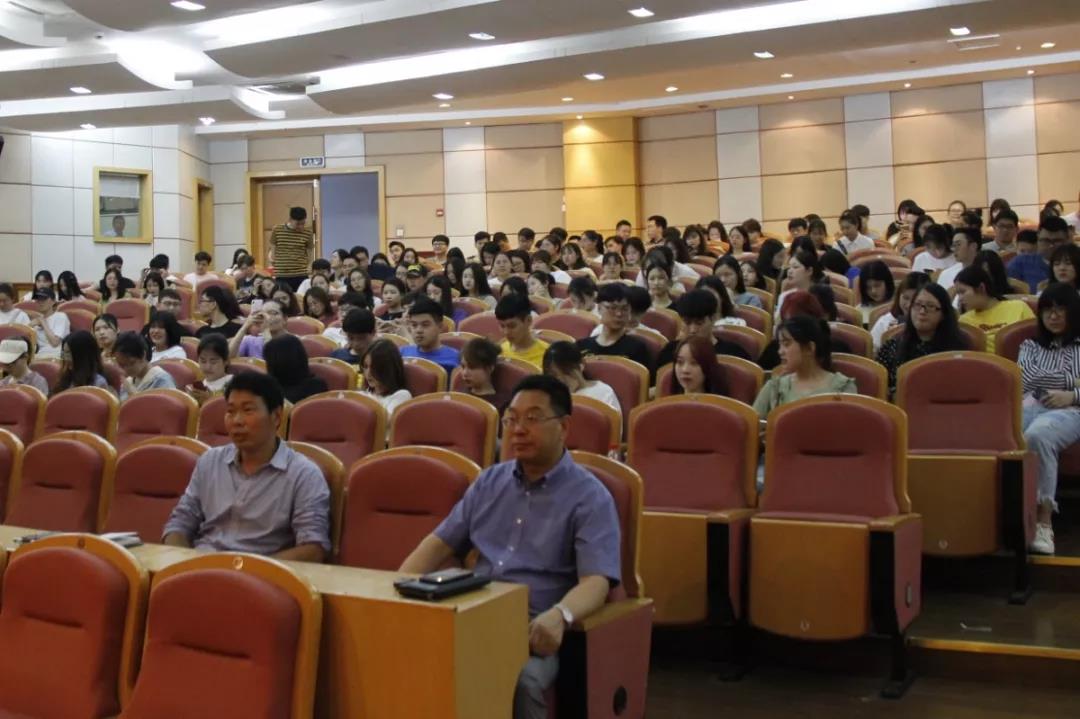 谢厚华院长致辞并为整个报告会做铺垫,他告诉即将毕业的2019届同学们,认真聆听老师和学姐们的工作经验和教导,不走弯路,潜心工作,避免在工作岗位上会吃大亏。最后希望同学们不管以怎样的心情离开这所学校,一定要带着足够的自信去闯天下。