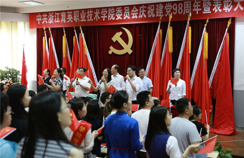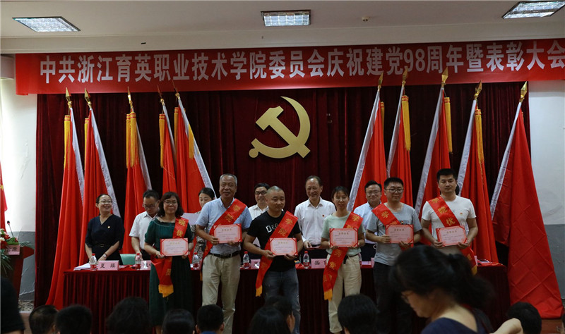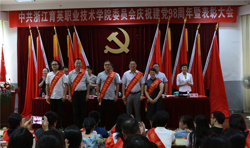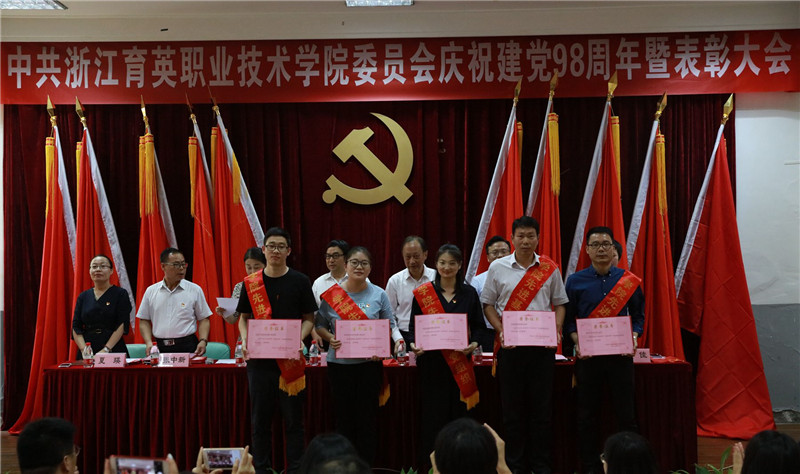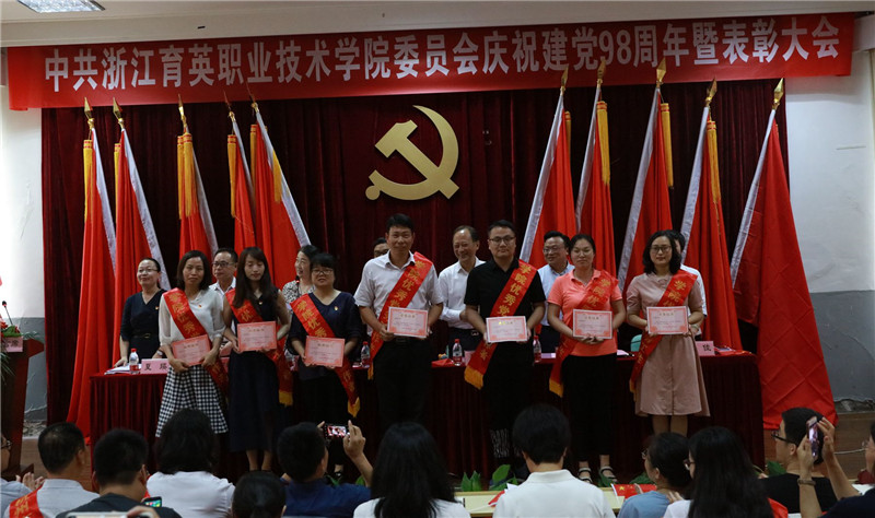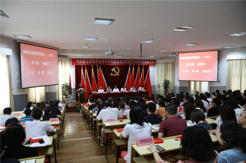 刘飞燕、谢厚华、王叶、朱尧、黄汶俊等5名杭州市教育系统优秀共产党员,商务贸易分院党总支部、经济管理分院党总支部、民航交通分院教工党支部、信息技术分院学生第二党支部、创意设计分院学生第二党支部等5个学院先进基层党组织;唐丽莹等20名教职工优秀党员,叶耀远等 7名学院优秀学生党员;许琼华等7名学院优秀党务工作者;民航交通分院第八党章学习小组等12个学院先进党章学习小组受到表彰。