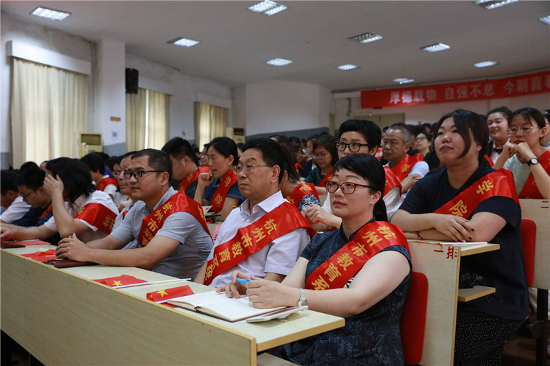 2019年7月1日下午,学院在一号报告厅隆重举行庆祝建党98周年暨表彰大会。学院领导盛健、王锡耀、谢鑫、王敏,党委委员张中新、夏瑛、邬佳出席,全体教职工党员及部分学生党员参加会议。会议重温了入党誓词,表彰了优秀党员、优秀党务工作者、先进基层党组织和先进党章学习小组等。党委副书记谢鑫主持会议。