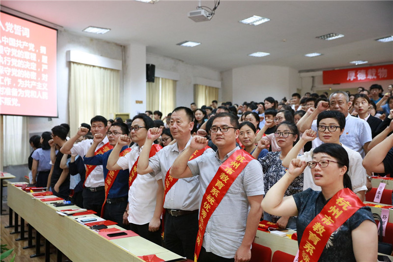 全体党员在党委委员、学工部长邬佳带领下重温入党誓词,并在领唱人王锡耀、赵燕、裘波、汪薏群带领下齐声高歌《我和我的祖国》。
