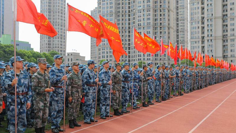 中国人民解放军73021部队领导王双峰讲话。他希望通过这次军训,同学们能实现四个锻造,即锻造强军之情怀,锻造强军之追求,锻造强军之品格,锻造强军之作风,以优异的军训成绩向新中国成立70周年献礼!