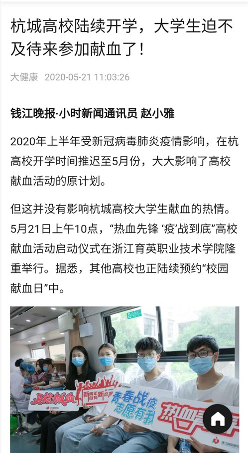 【钱江晚报】杭城高校陆续开学,大学生迫不及待来参加献血了!