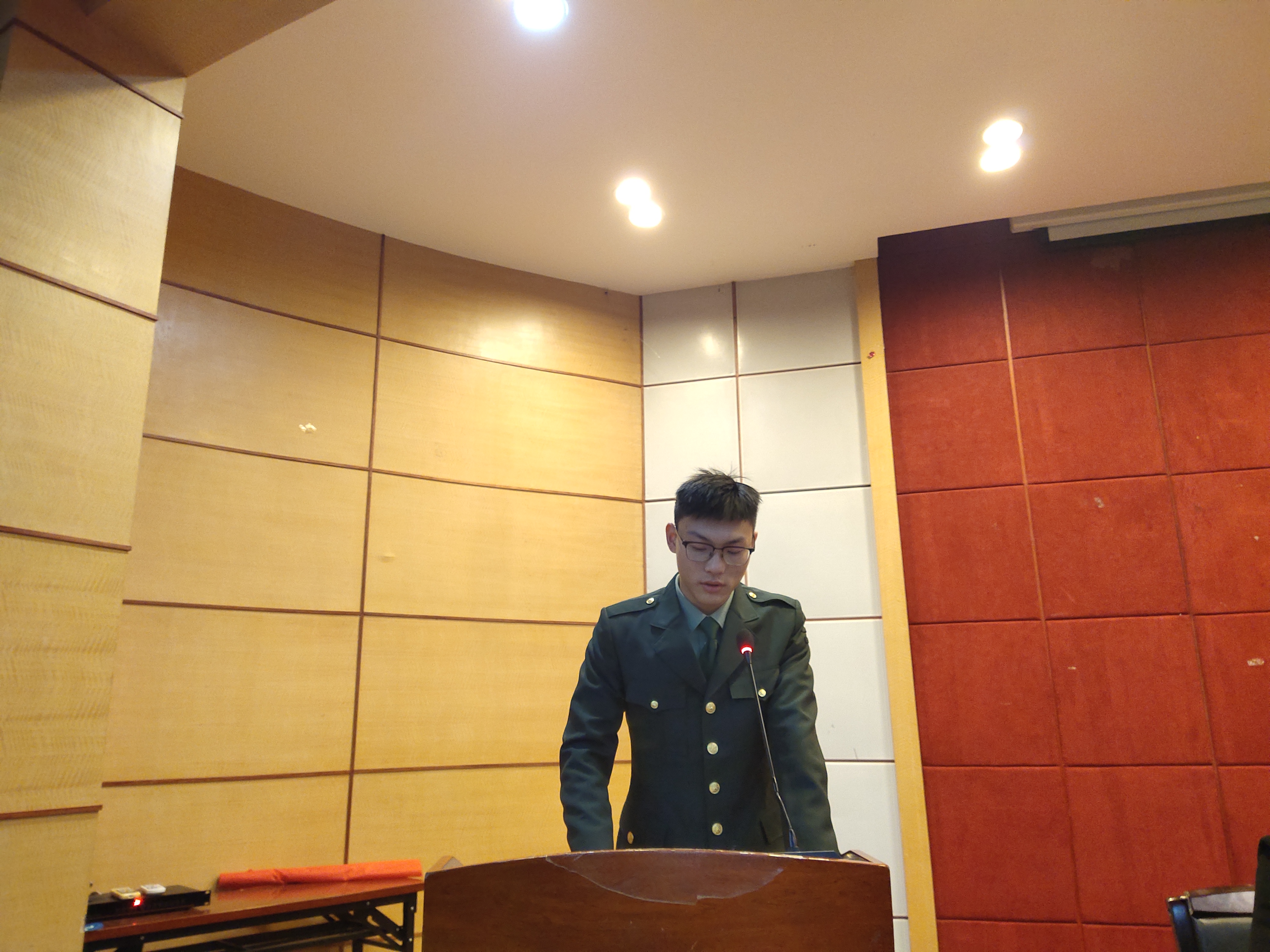 2018年退役士兵代表熊英杰发言,他简单的介绍了退伍之后在育英的学习情况,刚开始回到地方的时候,会有所不适,在育英的帮助下,不仅让自己更好的回归社会,而且还学习到了一门技能,找到了一份合适自己职业规划的工作。最后衷心祝愿战友们可以在新的起点上取得更好的成绩。体现我校当代大学生的青春风华,为国家、学校再立新功。