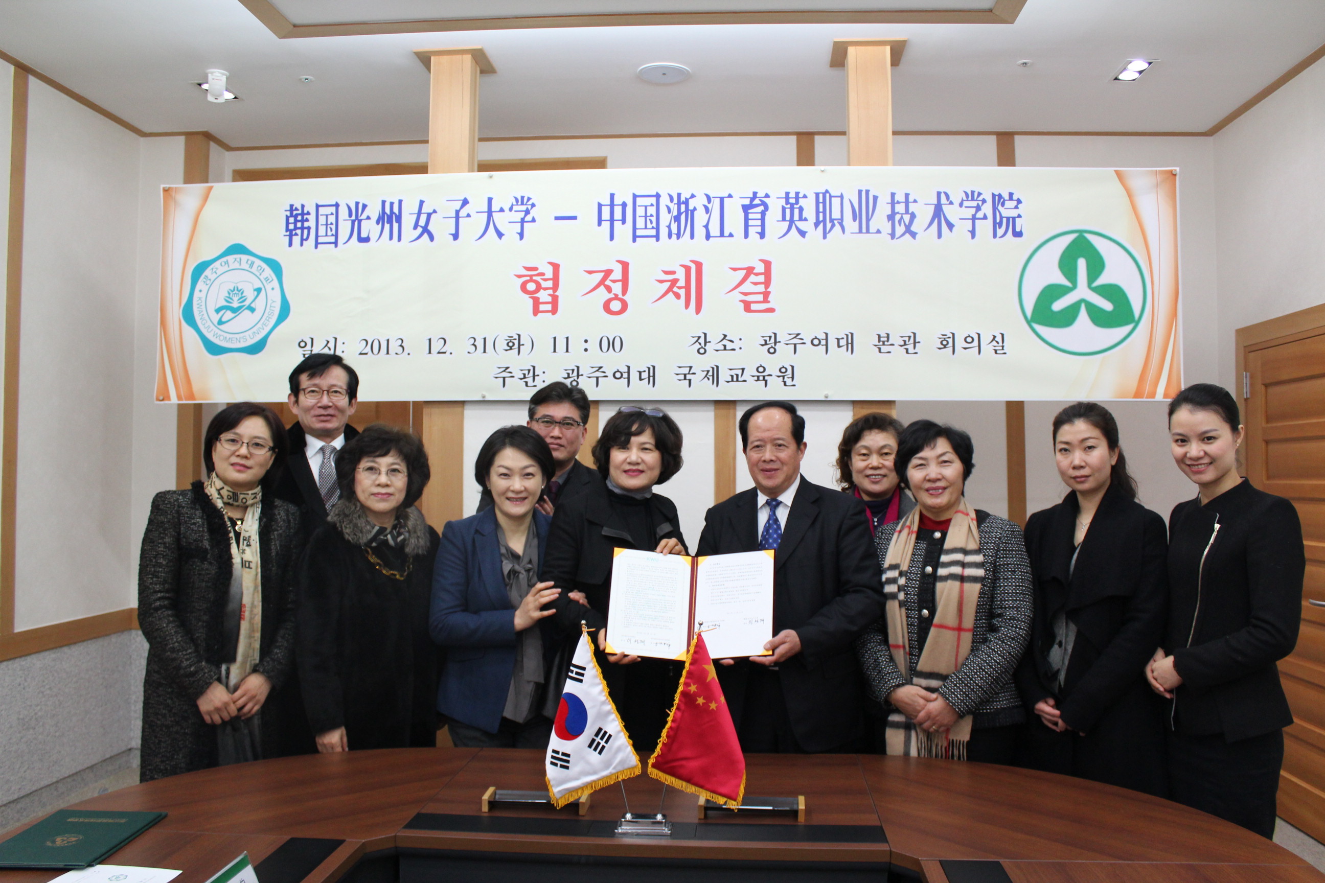 2013年12月,洪致平院长与韩国光州女子大学李善宰校长签署友好交流合作协议