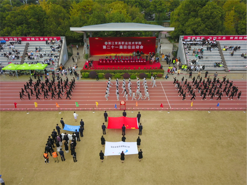 2020年11月5日,育英学院第二十一届运动会在田径场隆重举行。执行院长黄爱平, 党委书记、副院长谢鑫,副院长王敏、崔海辉以及各单位、各部门负责人在主席台就座。王敏主持开幕式。