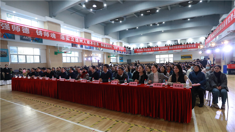 全国高校党建工作样板支部书记、浙江省三育人岗位建功先进个人、商务贸易分院国贸教研室主任傅祝屏代表教师发言,倡议全体教师不忘初心、牢记教书育人使命,强师德、铸师魂、落实立德树人任务,争当新时代“四有”好老师。