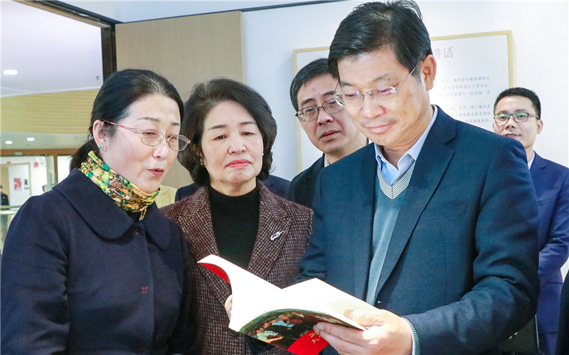 干武东一行参观了学院校史馆。学院党委书记、副院长谢鑫介绍了学院校史和基本情况,汇报了党建工作特色、亮点和经验。她介绍了时任浙江省委书记习近平视察学院的情况和11月19日出版的《习近平与大学生朋友们》一书。她说,2003年4月12日时任浙江省委书记习近平视察学院时评价学院“作为一所民办学校办得不错,作为一所职业技术学院办得不错,党建工作氛围不错”,而这本书第八部分 “习书记来到学生社团活动中心” 还原了当时的情景。习近平总书记对于学院“三个不错”的评价一直激励全院师生砥砺前行,是我们巨大的精神财富。育英学院是最早建立基层党组织的民办高校之一,曾先后获得省市先进基层党组织称号、全国高校党建工作样板支部、浙江省高校“双带头人”教师党支部工作室等荣誉。加强党的组织建设,是党的政治需要,也是学院发展的内在需要,党建工作是学院发展的有机组成部分,学院党委坚持以“结合”的思维,科学设计党组织战斗堡垒作用和党员先锋模范作用发挥的有效载体,使党建与学院发展工作有机结合。